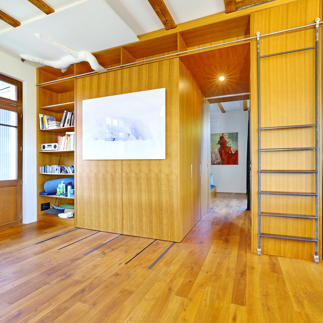 Ausgeführte Arbeiten: Türen, Bodenbeläge, Küche, Treppe, spezielle Schiebeschränke, Möbel, Terrassendeck und allgemeine Schreinerarbeiten.