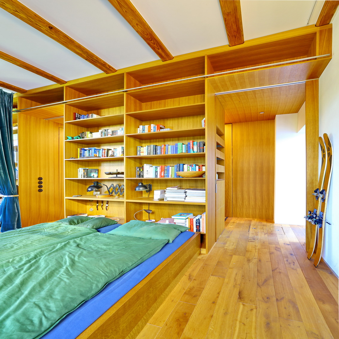 Ausgeführte Arbeiten: Türen, Bodenbeläge, Küche, Treppe, Schränke, Möbel, Badezimmermöbel und allgemeine Schreinerarbeiten.